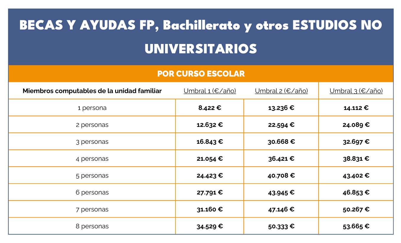 El límite (umbral) de renta que consideran para conceder una beca depende del número de miembros computables de tu unidad familiar y se publica cada año mediante el llamado decreto de umbrales.
